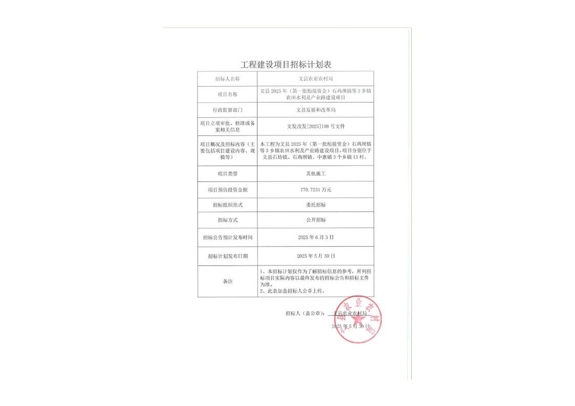 文縣2025年(第一批銜接資金)石雞壩鎮(zhèn)等3鄉(xiāng)鎮(zhèn)農(nóng)田水利及產(chǎn)業(yè)路建設(shè)項(xiàng)目