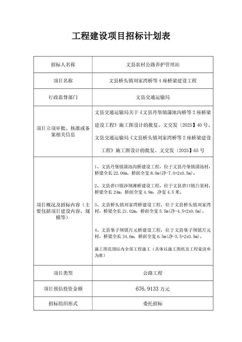 文縣橋頭鎮(zhèn)劉家灣橋等4座橋梁建設(shè)工程