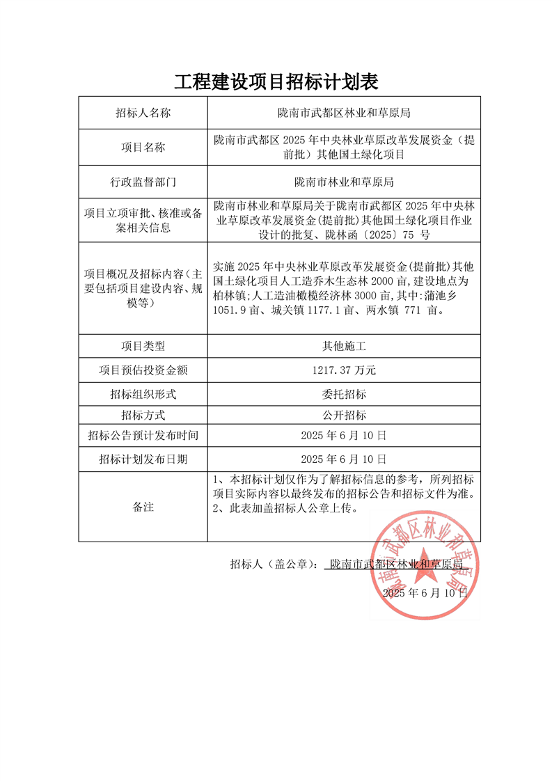 隴南市武都區(qū)2025年中央林業(yè)草原改革發(fā)展資金(提前批)其他國土綠化項(xiàng)目