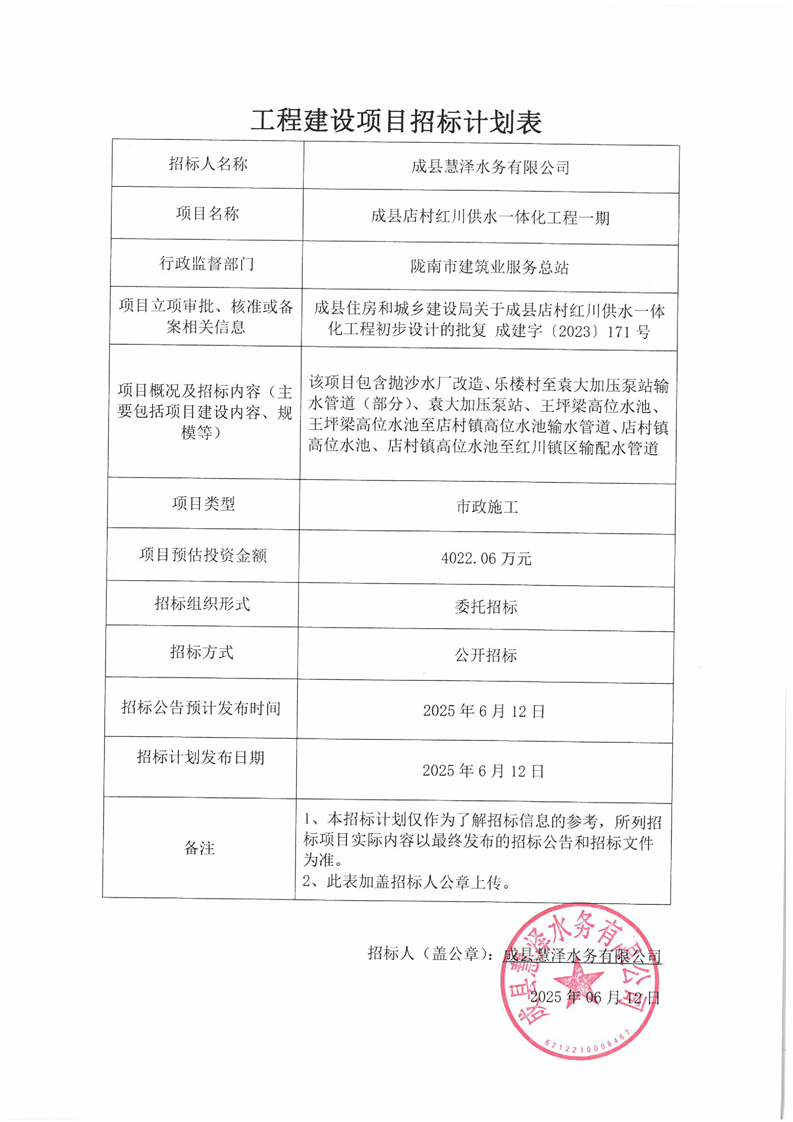 附件:工程建設(shè)項(xiàng)目招標(biāo)計(jì)劃表成縣店村紅川供水一體化工程一期.pdf