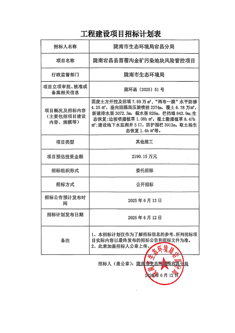 宕昌縣苜蓿溝金礦污染地塊風險管控項目