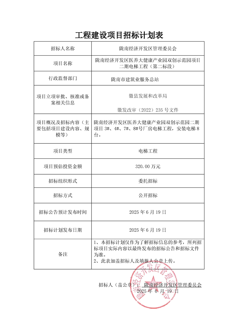 隴南經(jīng)濟開發(fā)區(qū)醫(yī)養(yǎng)大健康產(chǎn)業(yè)園雙創(chuàng)示范園項目二期電梯工程(第二標段)