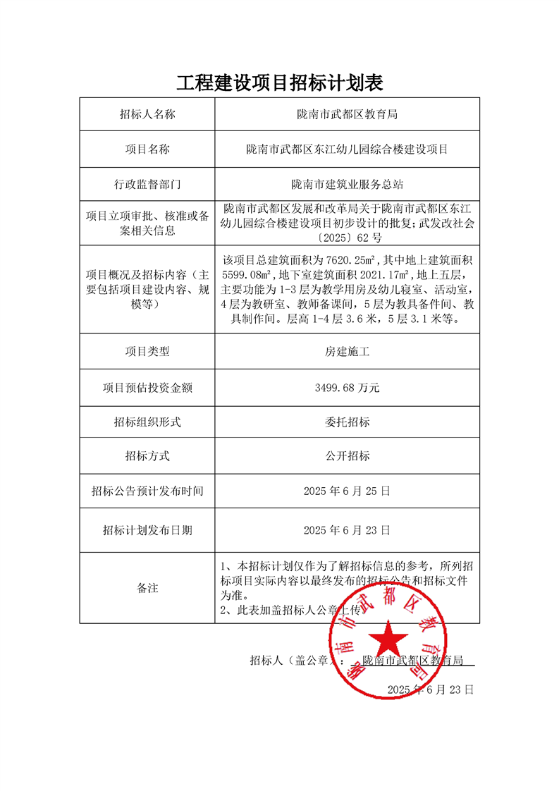 隴南市武都區(qū)東江幼兒園綜合樓建設(shè)項(xiàng)目