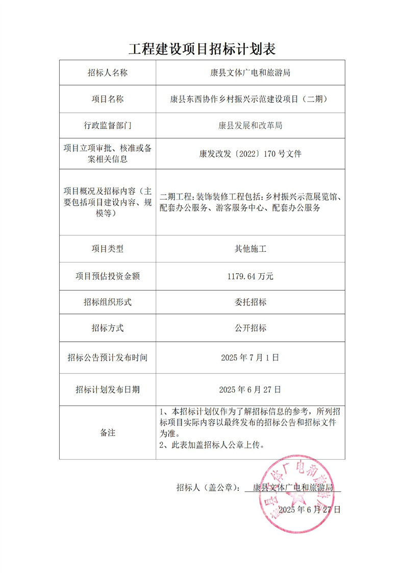 康縣東西協(xié)作鄉(xiāng)村振興示范建設項目(二期)