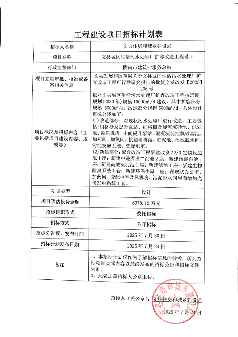 文縣城區(qū)生活污水處理廠擴容改造工程設計
