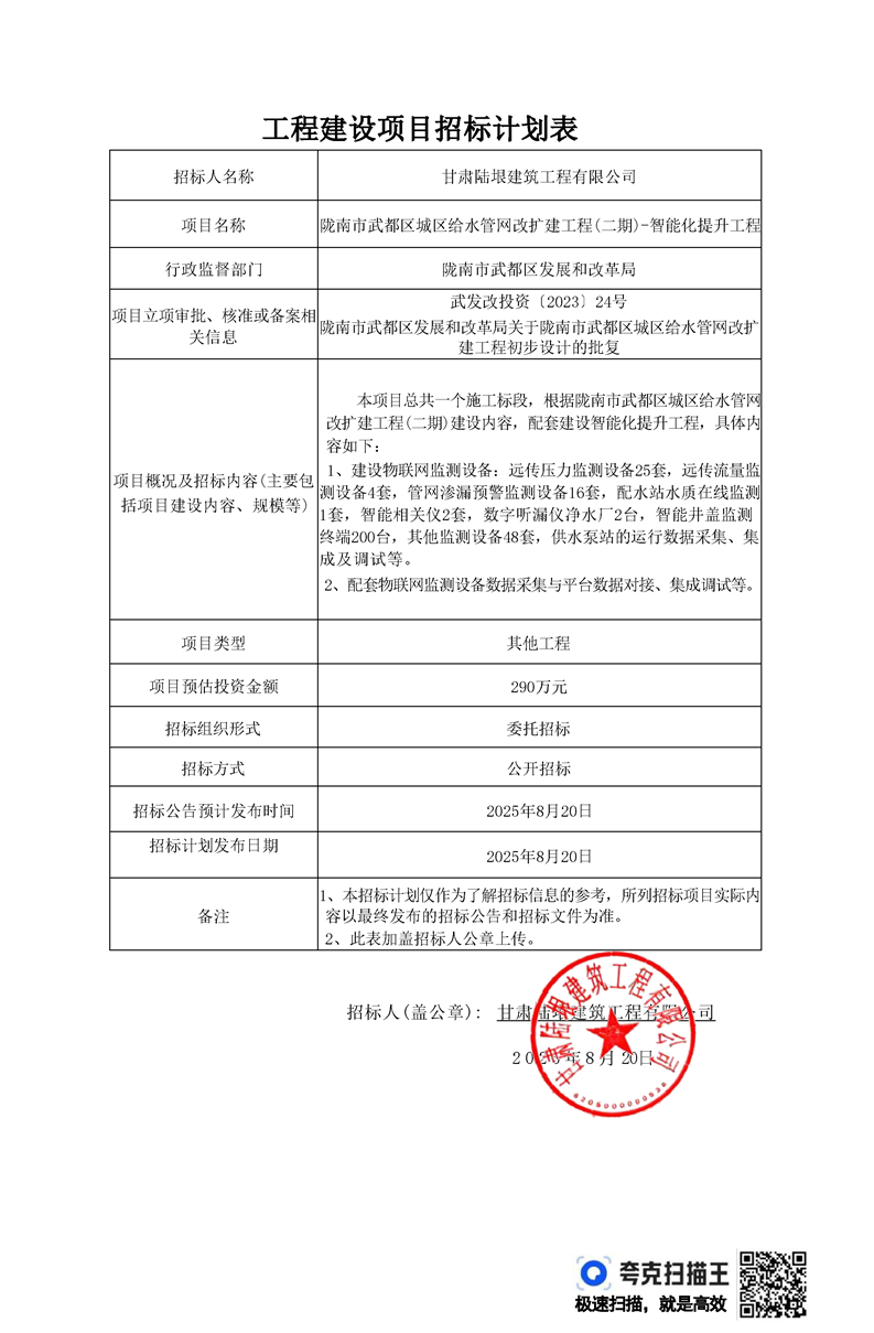 隴南市武都區(qū)城區(qū)給水管網(wǎng)改擴建工程(二期)-智能化提升工程