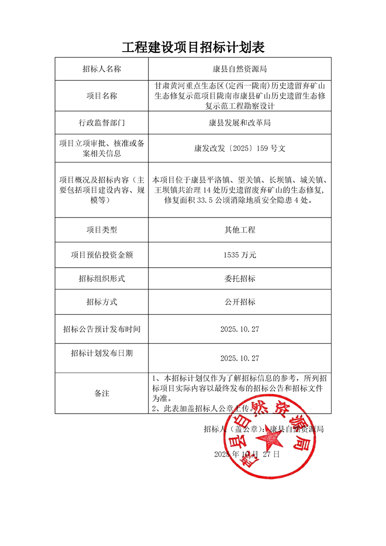 甘肅黃河重點生態(tài)區(qū)(定西一隴南)歷史遺留棄礦山生態(tài)修復示范項目隴南市康縣礦山歷史遺留生態(tài)修復示范工程勘察設計
