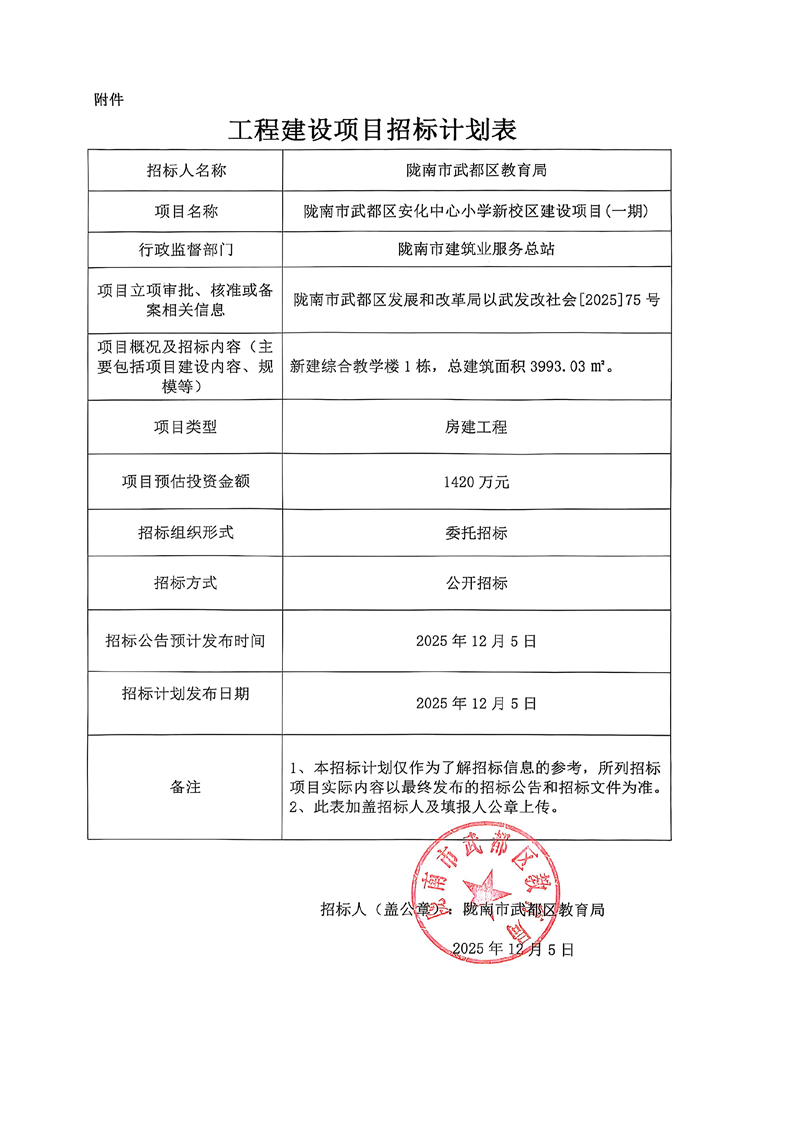 隴南市武都區(qū)安化中心小學(xué)新校區(qū)建設(shè)項目(一期)
