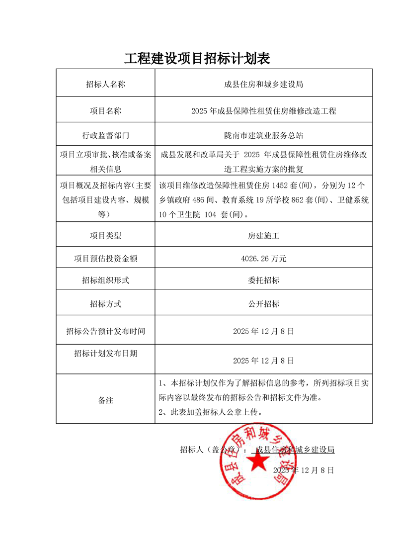 2025年成縣保障性租賃住房維修改造工程