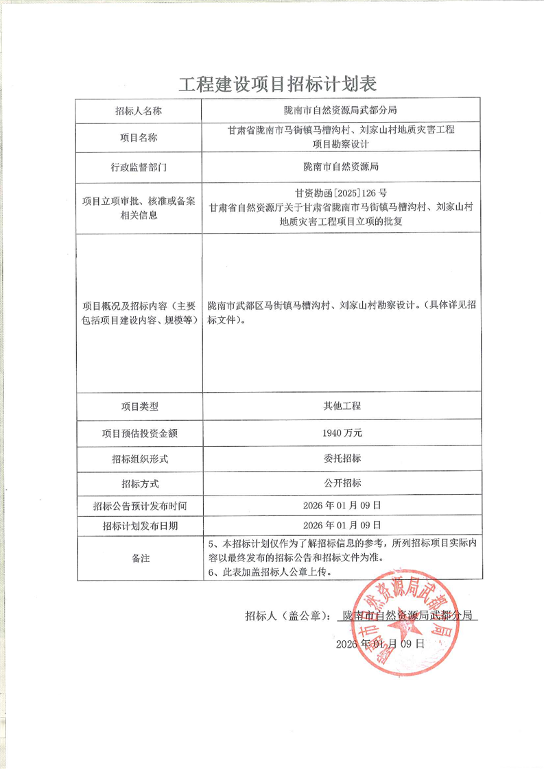 隴南市武都區(qū)馬街鎮(zhèn)馬槽溝村、劉家山村地質(zhì)災(zāi)害治理工程勘察設(shè)計
