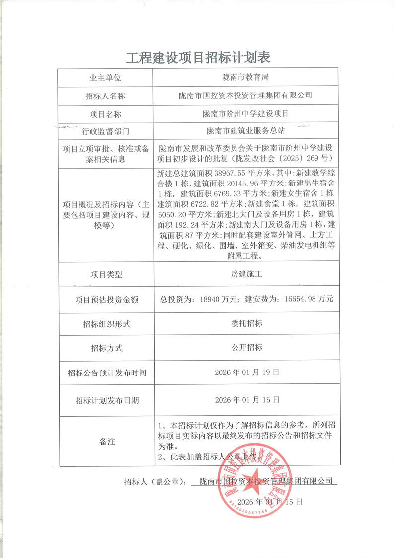 首頁(yè) > 交易信息 > 工程建設(shè) > 項(xiàng)目招標(biāo)計(jì)劃