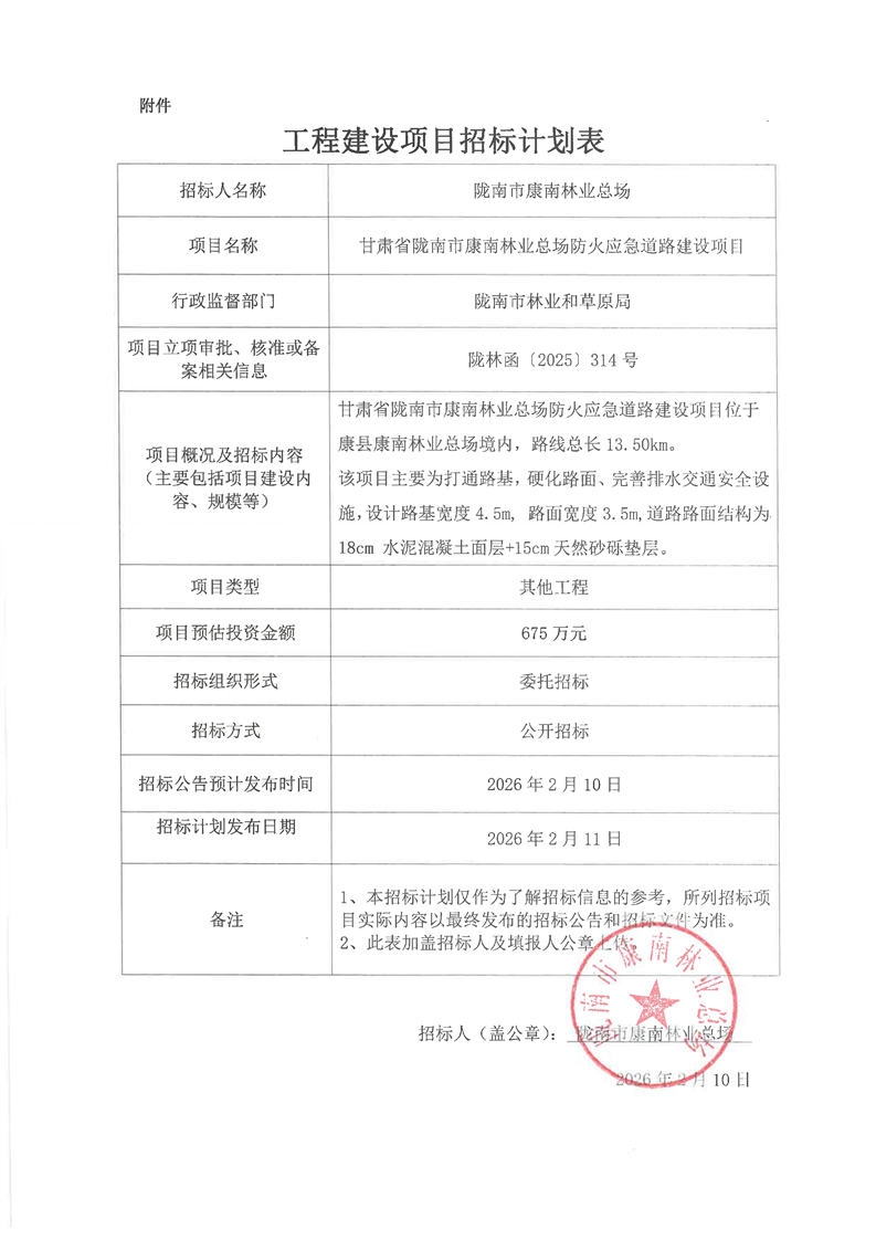 甘肅省隴南市康南林業(yè)總場防火應(yīng)急道路建設(shè)項目