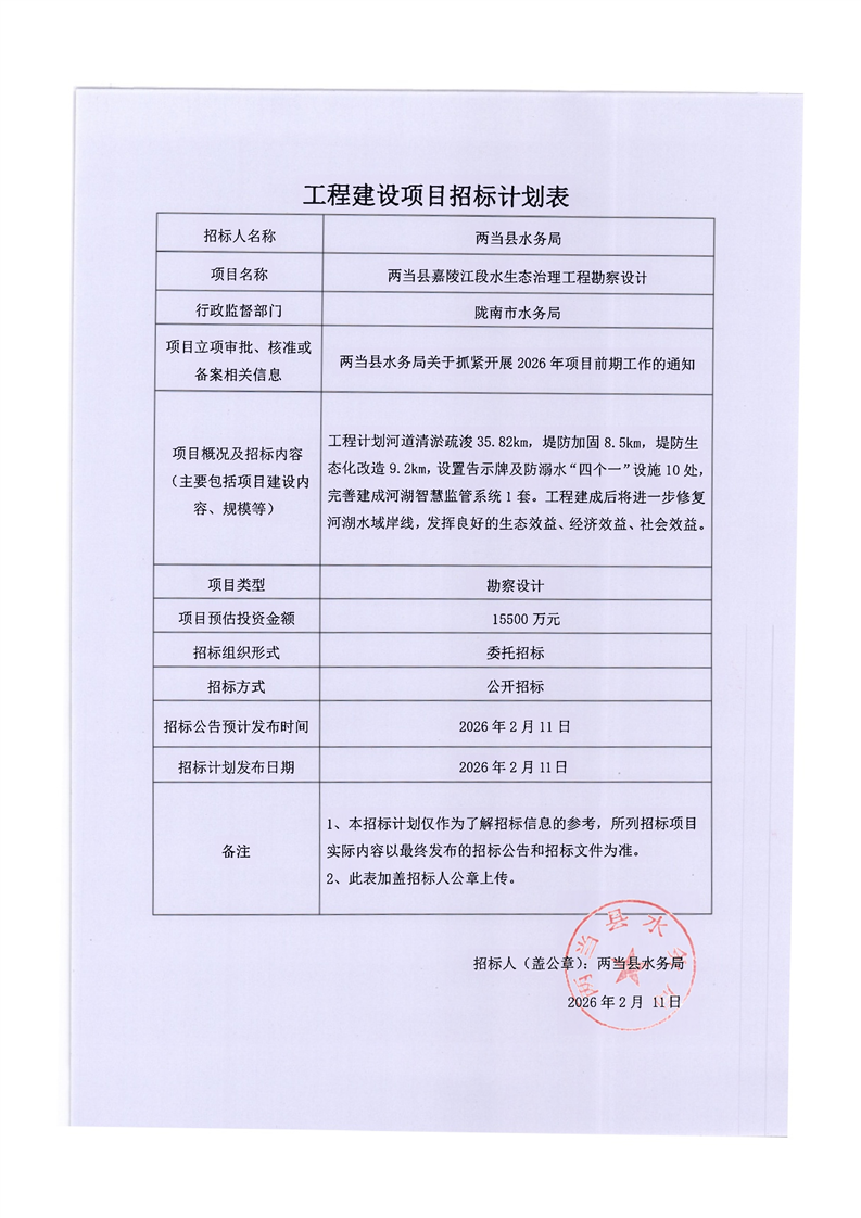 兩當(dāng)縣嘉陵江段水生態(tài)治理工程勘察設(shè)計(jì)