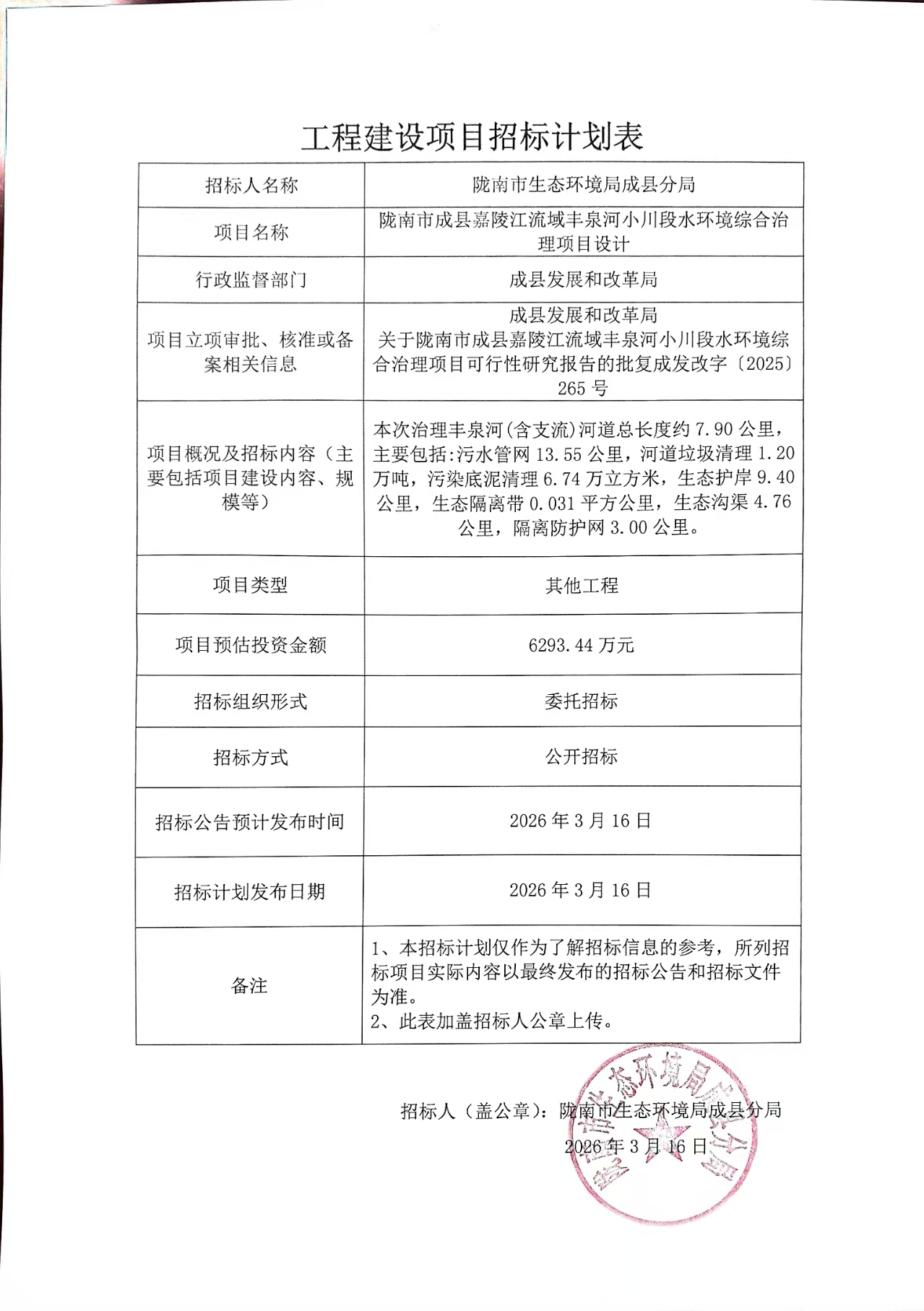 隴南市成縣嘉陵江流域豐泉河小川段水環(huán)境綜合治理項目設計