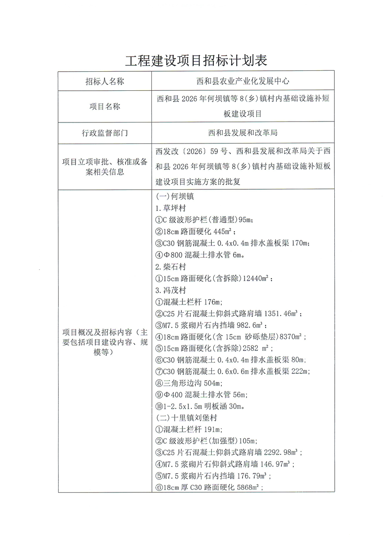 西和縣2026年何壩鎮(zhèn)等8(鄉(xiāng))鎮(zhèn)村內(nèi)基礎(chǔ)設(shè)施補(bǔ)短板建設(shè)項(xiàng)目