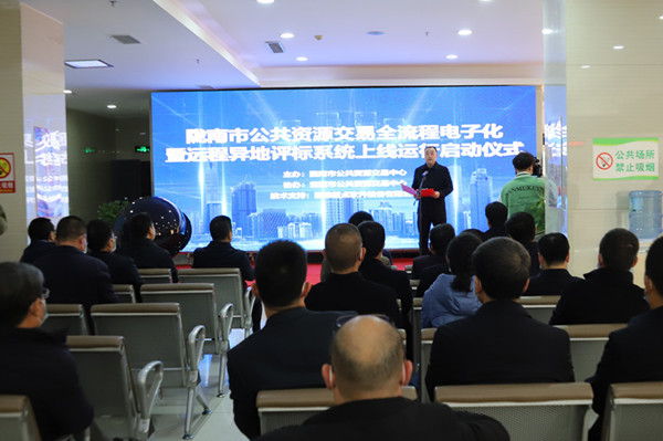 啟動(dòng)儀式上,中心黨組書記、主任張巍做了致辭,并向參會(huì)嘉賓播放了市公共資源交易中心工作匯報(bào)專題視頻。隨后大家通過(guò)大屏幕觀看了隴南-定西兩地評(píng)委實(shí)時(shí)遠(yuǎn)程異地評(píng)標(biāo)情景畫面;兩地專家準(zhǔn)備就緒后,與會(huì)領(lǐng)導(dǎo)發(fā)送系統(tǒng)啟動(dòng)指令,共同見證了隴南市公共資源交易全流程電子化暨遠(yuǎn)程異地評(píng)標(biāo)系統(tǒng)上線運(yùn)行。