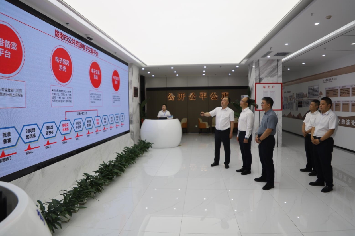 在調(diào)研過程中,李榮先后察看了交易服務(wù)大廳、網(wǎng)上開標(biāo)直播大廳、專家抽取室、封閉評標(biāo)區(qū)、多功能交易廳、黨建活動中心、行業(yè)監(jiān)管區(qū)、電子檔案管理室等運行情況,現(xiàn)場認(rèn)真聽取了有關(guān)情況的匯報。對交易中心在場所設(shè)施保障、推行全流程電子化交易、黨建與業(yè)務(wù)融合發(fā)展、營造良好營商環(huán)境等方面工作給予了充分肯定。