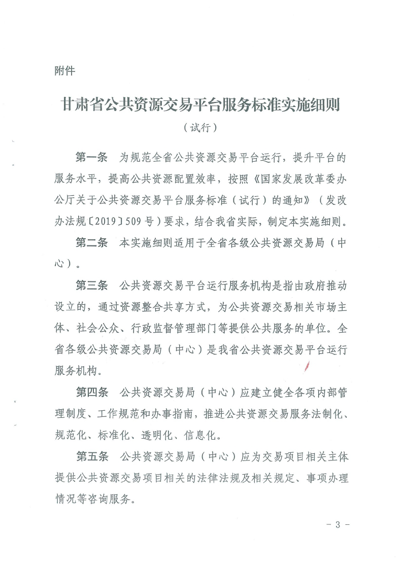 省發(fā)改委省公共資源交易局關(guān)于印發(fā)《甘肅省公共資源交易平臺服務(wù)標(biāo)準(zhǔn)實施細(xì)則(試行)》的通知